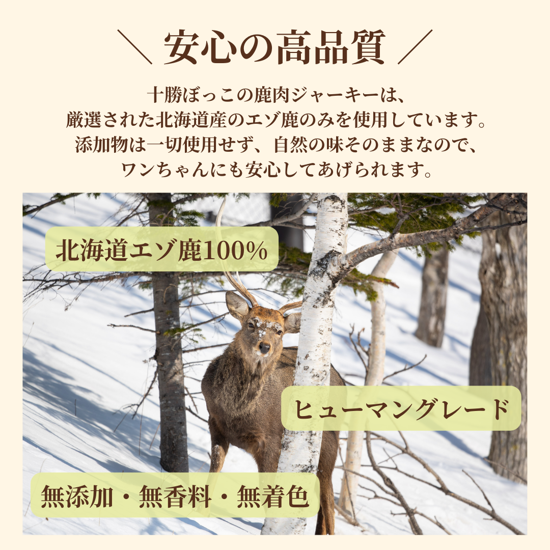 【愛犬愛猫に贈る至福のひととき 十勝ぼっこのエゾ鹿肉 肉厚ミンチジャーキー】